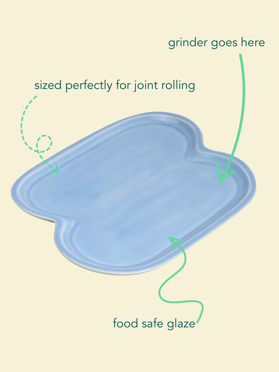 Welcome our newest tray to our studio series, Jellybean. It’s the perfect size to roll a joint in your lap or adorn your coffee table. The curved edge makes a wonderful niche to set your grinder while you roll and keep your weed contained. When you’re not seshing drop your trinkets here and keep it out on display.
