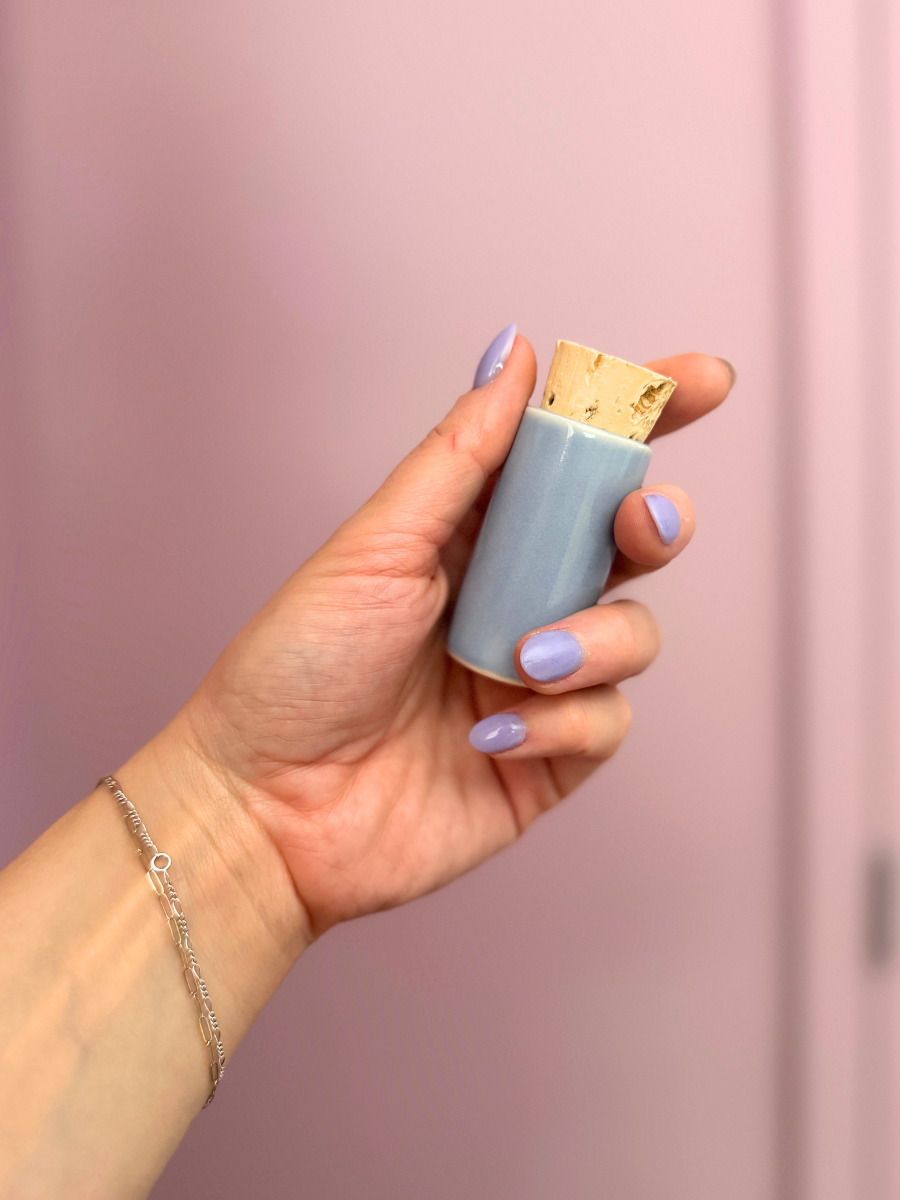 For years, customers have asked me to make mini jars that can be easily held in the palm of their hand. When I noticed the pouring gate remnants from our new Sunny Ashtray design were perfectly sized for a mini jar, I knew this would be a great opportunity for a new jar design that would be functional, highly requested, and would utilize a piece of clay that would normally be discarded.