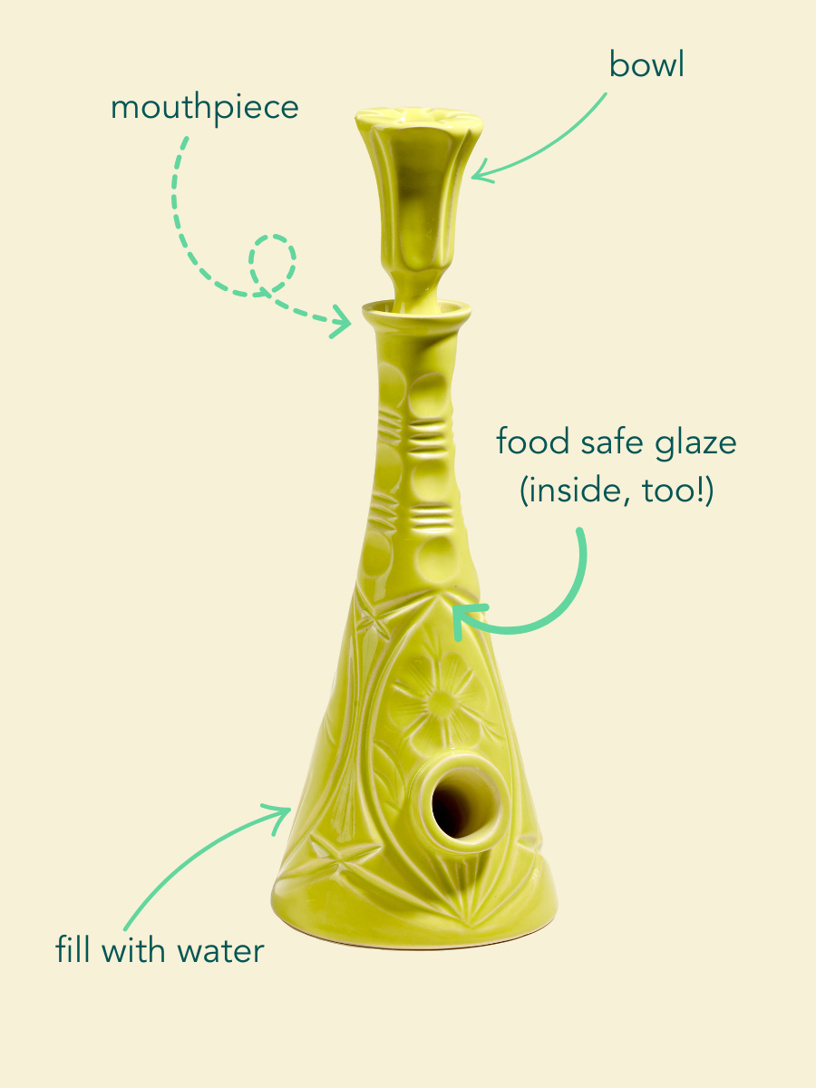 Flora is a ceramic bong that's equally comfy being the center of attention as she is hanging out like a wallflower.
