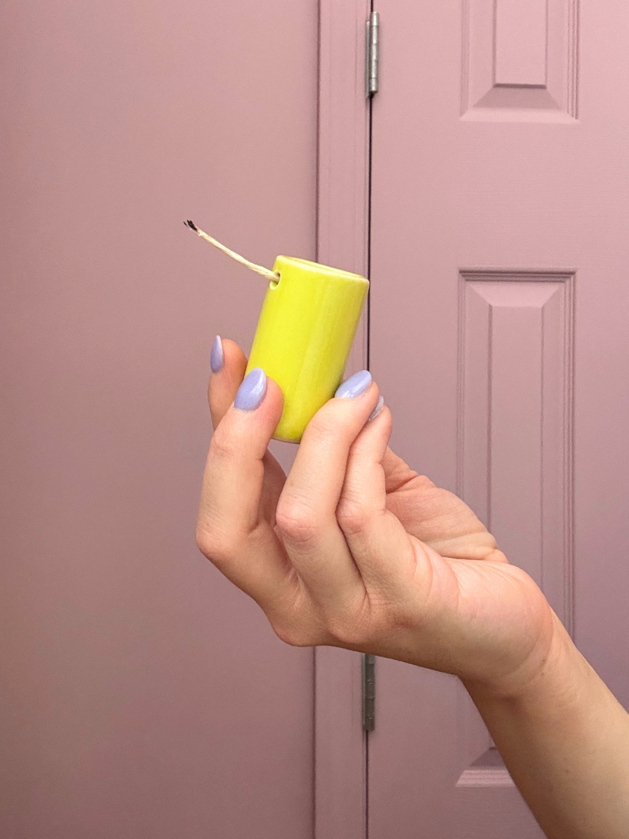 When I saw we were left with perfectly cylindrical remnants as byproducts of our new ashtray design, I knew this would be the perfect time to keep that piece of clay from the discard pile while adding a wick holder to our product lineup.