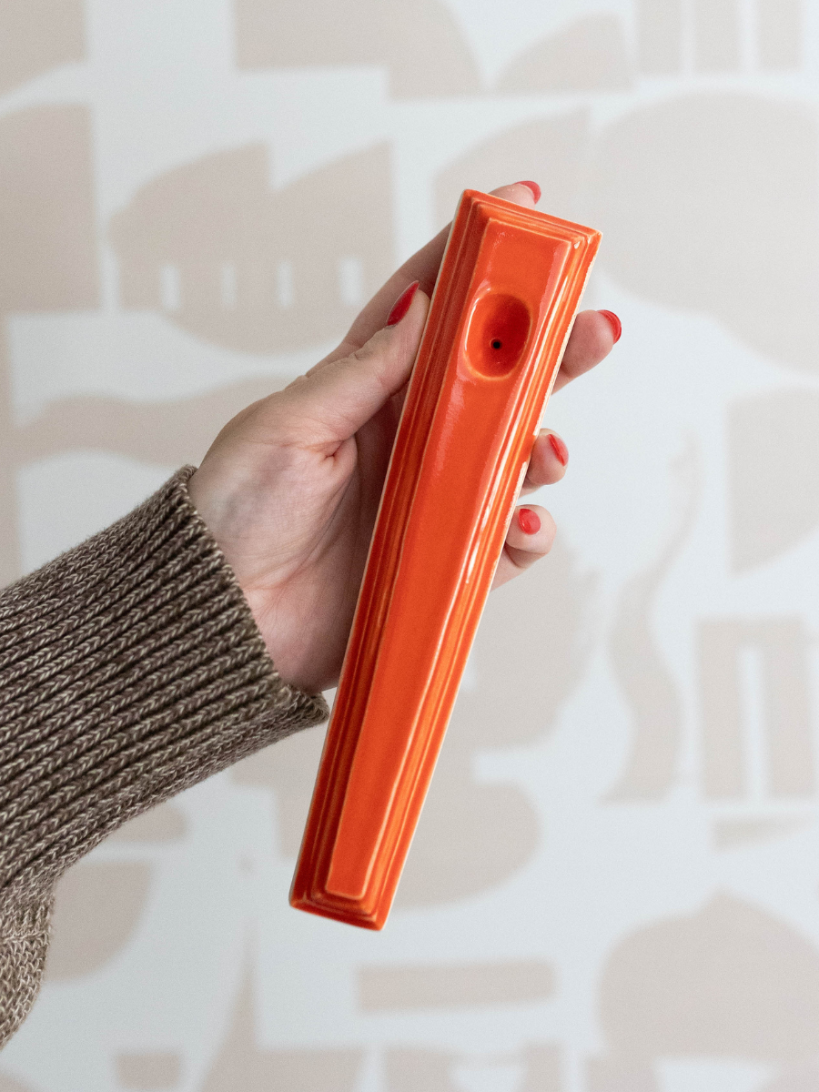 To clean our ceramic smokeware, stream in your cleaning solution of choice, plug the holes to shake, and swipe the sticky bits with a pipe cleaner. For a full tutorial view our Care guide.