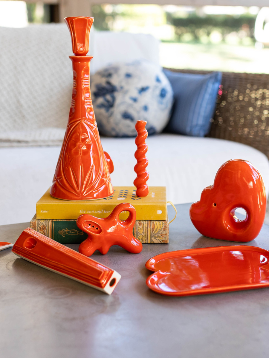 Originally cast from a carved wooden form, Nelle has a roomy, glazed inner chamber and handsome, raw-clay details around the edges.